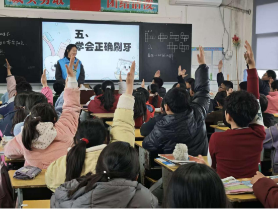 活动现场暖意融融、趣味盎然。志愿者们以动画短片、趣味PPT与模型演示相结合的方式,用生动易懂、贴近儿童的语言,系统讲解牙齿结构功能、龋齿形成原因、换牙期防护要点及窝沟封闭等知识。“原来牙齿里面藏着这么多小秘密!”一名学生听完讲解后兴奋地说。